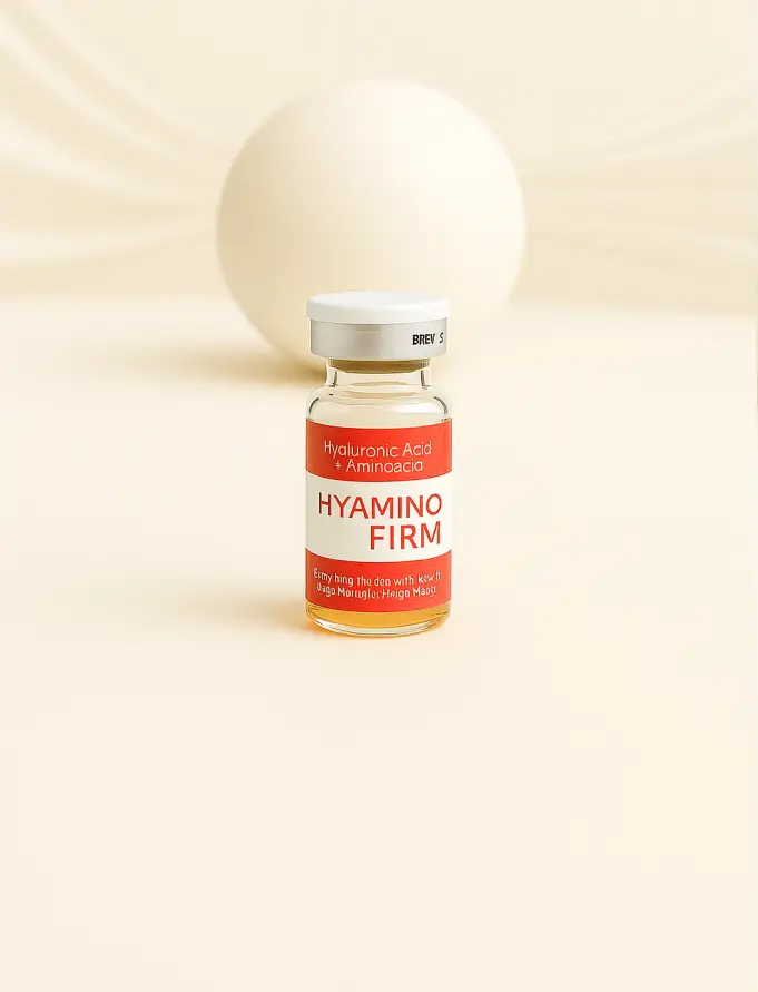 Hyamino Firm is a professional-grade mesotherapy protocol designed for aesthetic practices seeking visible improvements in skin tightness, elasticity, texture and tone. According to your site, the formulation is composed of about 15 mg/mL high-molecular-weight hyaluronic acid, a DMAE-firming complex, four amino acids, one peptide and two vitamins in a buffered solution.